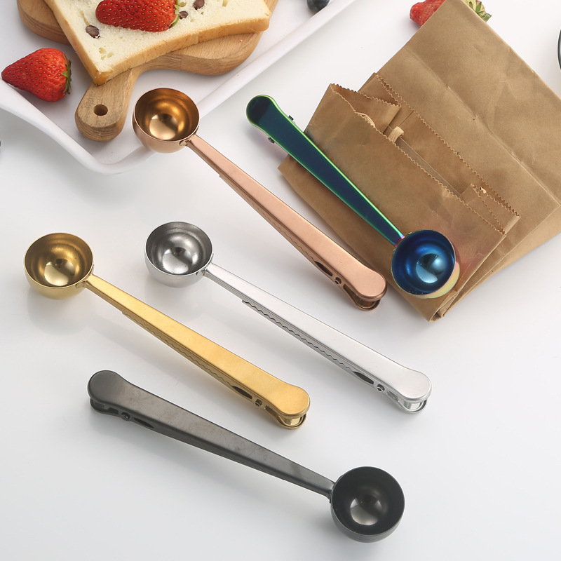 304ステンレス2 in 1コーヒースプーンクリップ付き多機能粉ミルク計量スプーンクリップキッチン食品シールクリップ