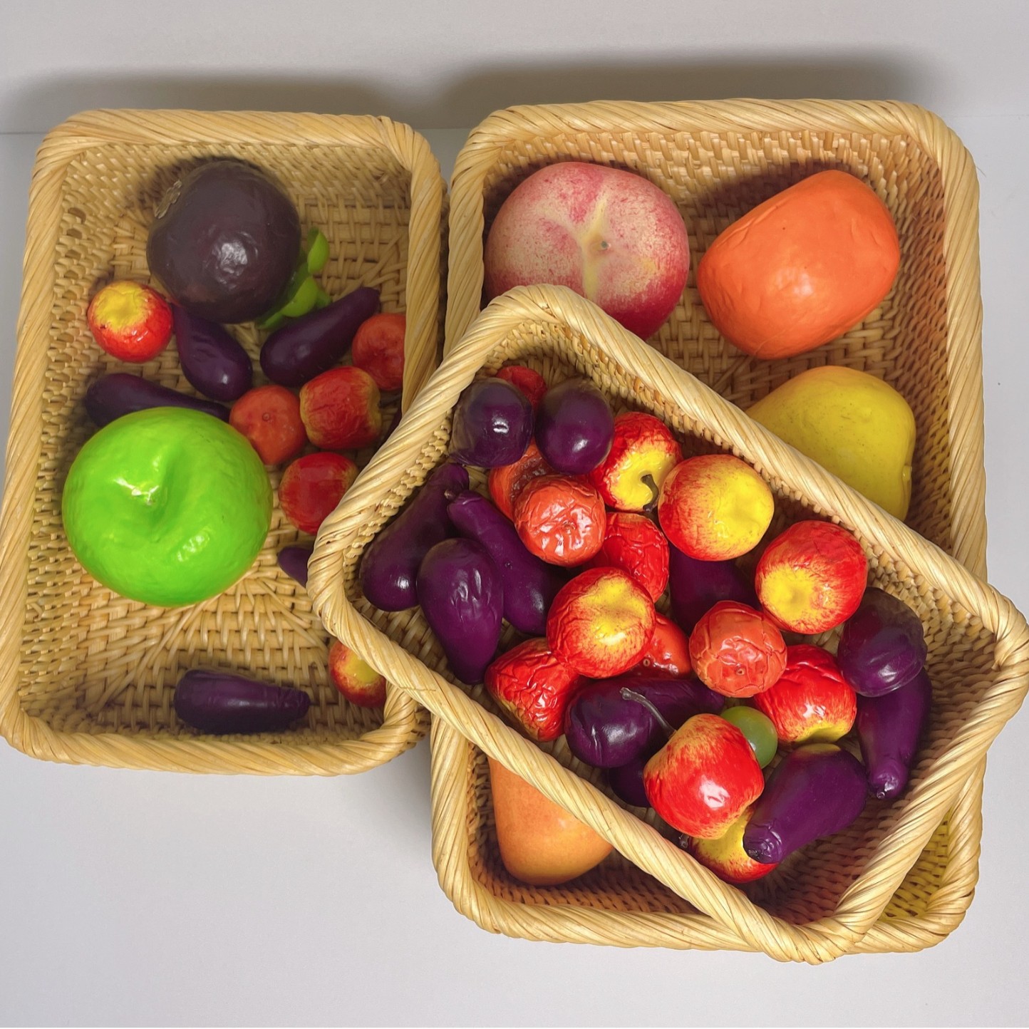 籐製デスクサイドテーブル、ベッドサイドテーブル、リビングルームのデスクトップ収納バスケット、長方形収納ボックス、化粧品や文房具の収納、軽奢なスタイル