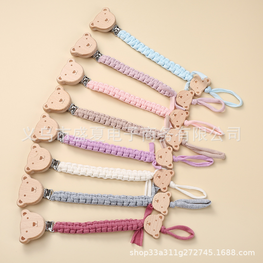 新商品の熊の頭のケヤキの木のクリップのおしゃぶりは綿の布を挟んで純粋に手作業で編みます。