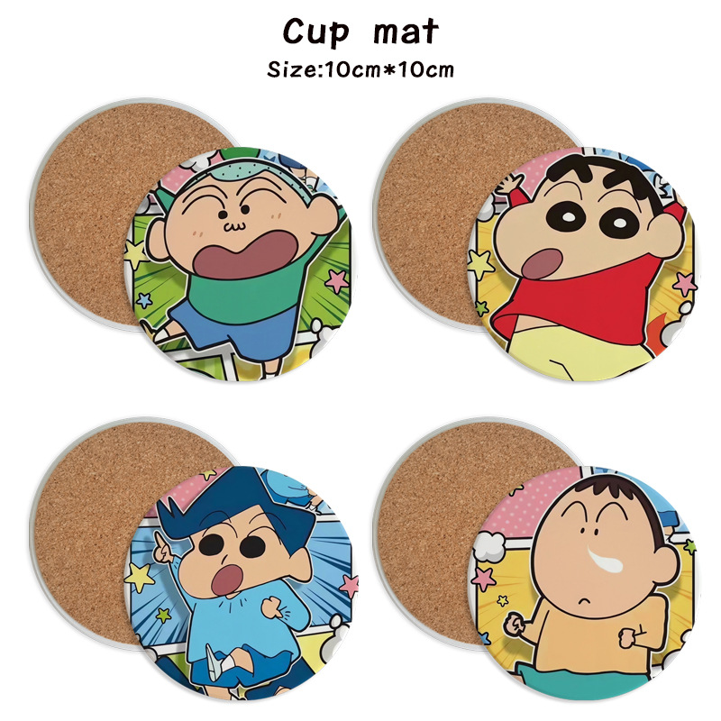 クレヨンしんちゃんアニメ周辺機器ラウンドコースタークリエイティブかわいい男女学生断熱セラミックウォーターカップ滑り止めマット