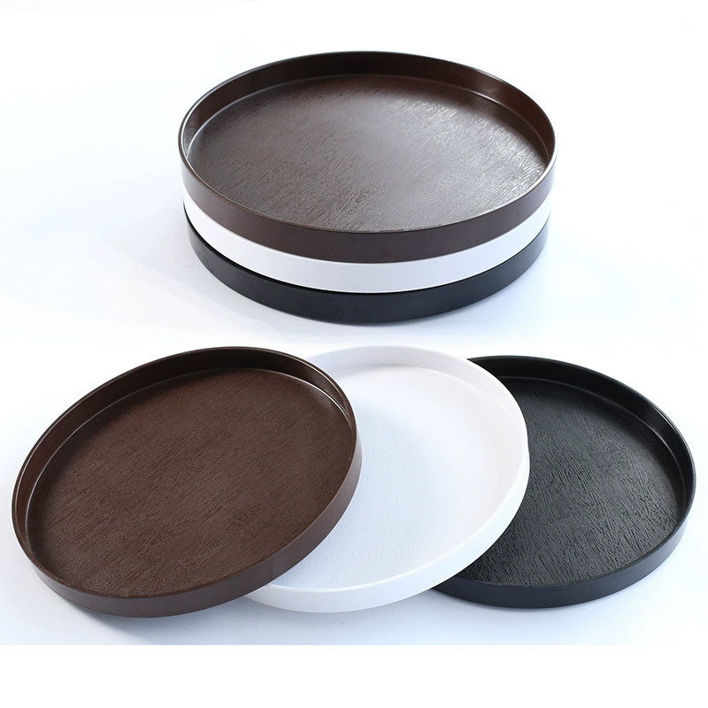 厚いトレーの月の明かりの白黒のメラミンは木目のコップの皿の円形の果物の皿の家庭用ホテルのトレーの食器をまねます。