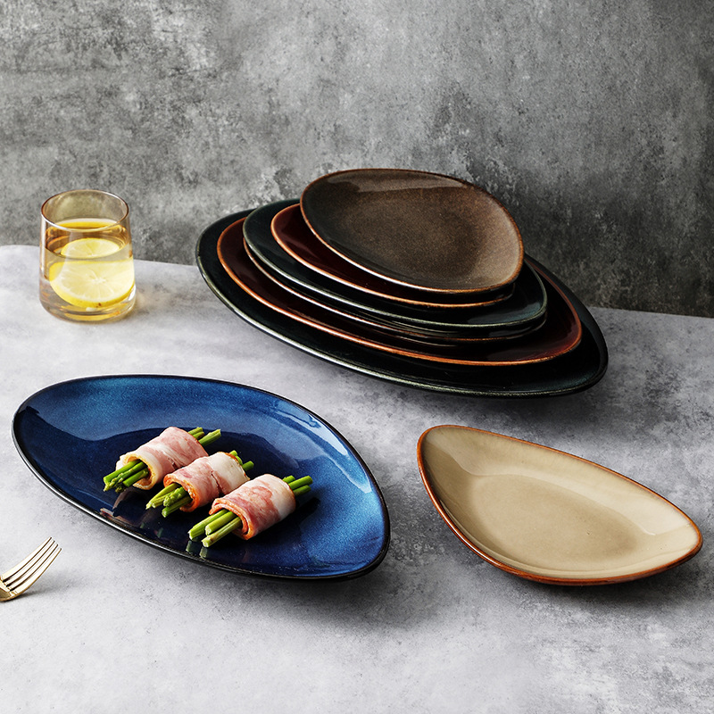 日本式の食事の皿の陶磁器のサラダの皿のアイデアの窯はステーキの皿の家庭の平たい皿の商用の野菜の皿の寿司の皿の食器に変わります。