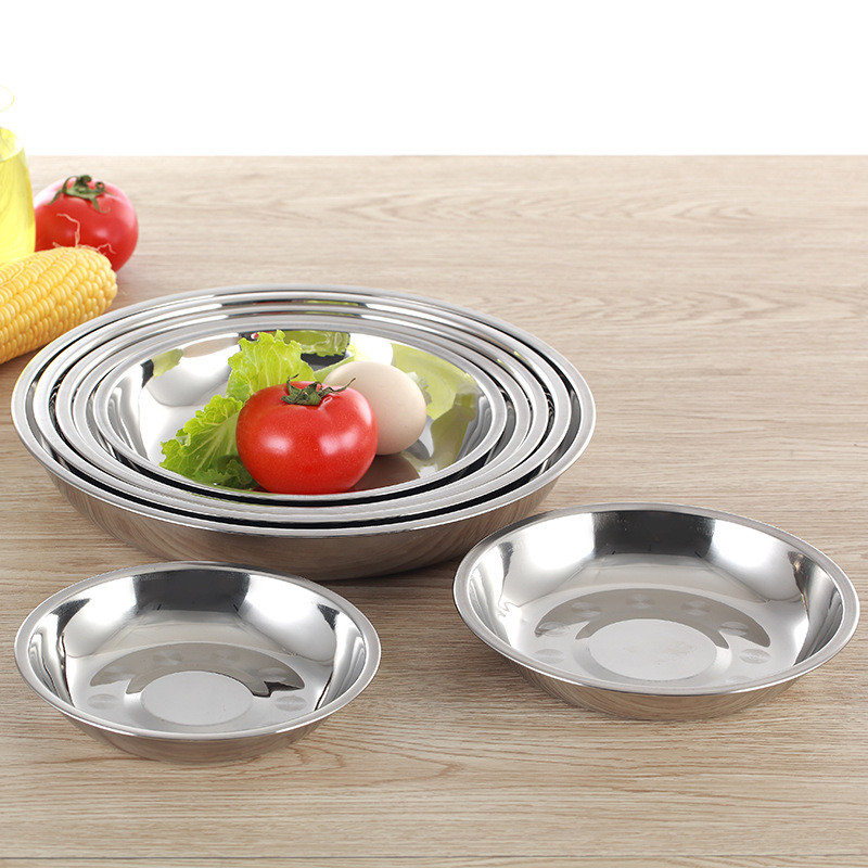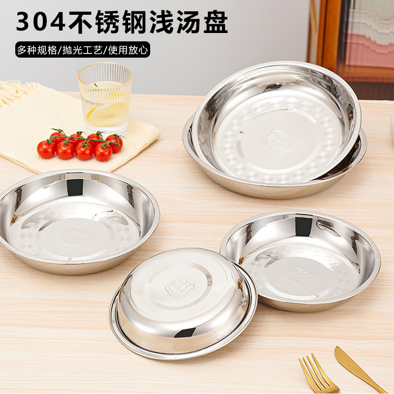 食品級ステンレススープ皿円盤料理皿小皿家庭用鉄皿料理皿果物皿蒸し皿スープ皿