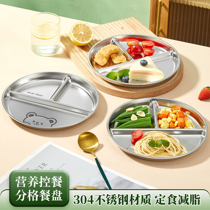 ステンレス分格食事皿定量減脂朝食皿子供アニメ転倒防止皿菓子皿クリエイティブ食器