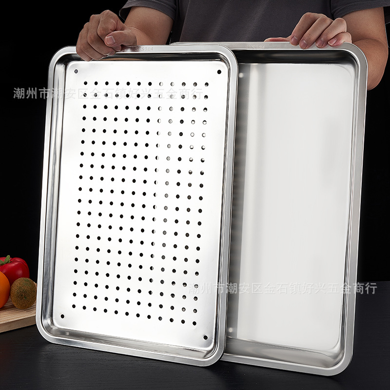 ステンレストレー長方形キッチンパンチングフラット食品級角皿焼き皿商用漏れ盆蒸し器皿