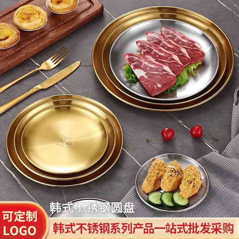 韓国式ステンレス304円盤金色平底トレー焼肉店家庭用商用レストラン浅皿骨料理皿