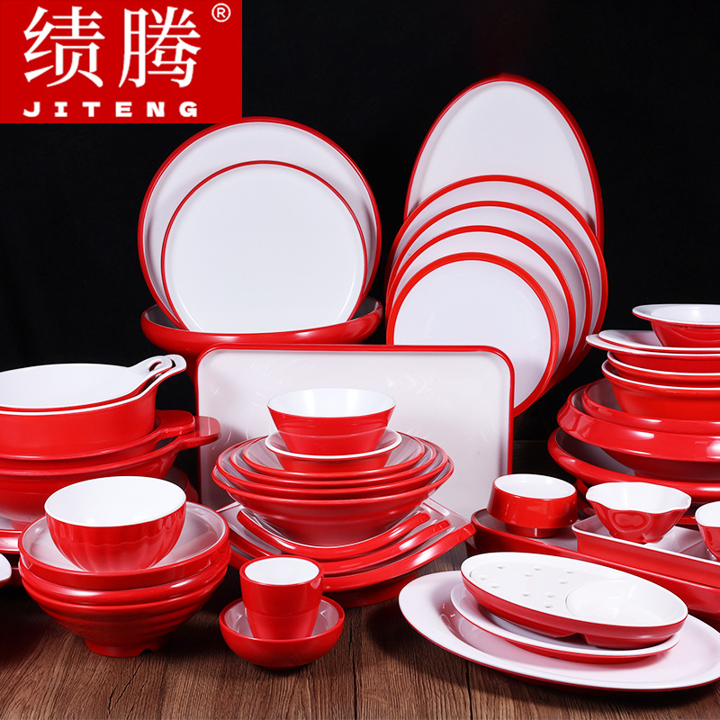 Jiteng 赤と白のプレートクリエイティブ 2 色の結婚式の宴会ホテルレストランホテル商業食器セットメラミン食器