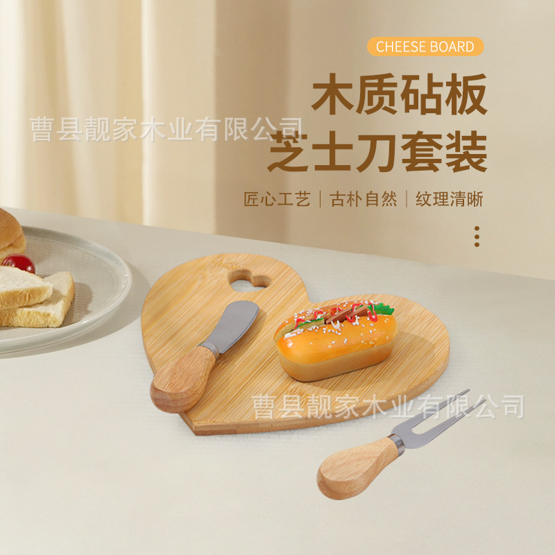 ハート型チーズボード、家庭用まな板、肉粘着ボード、無垢材ディナープレート、フルーツまな板、ナイフとフォーク付き卸売栄養補助食品