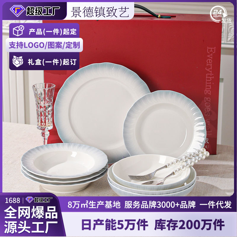 皿10個入り料理皿家庭用陶磁器炒め皿7インチがきれいで贅沢な新しい食器卸売り
