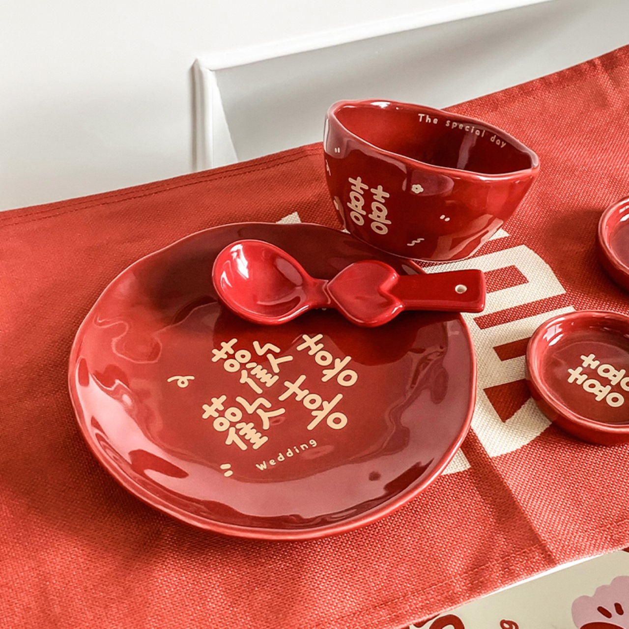鍋物中国式置き台陶磁器食器商用ホテルレストラン食器皿スプーン置き台三点セット高級感
