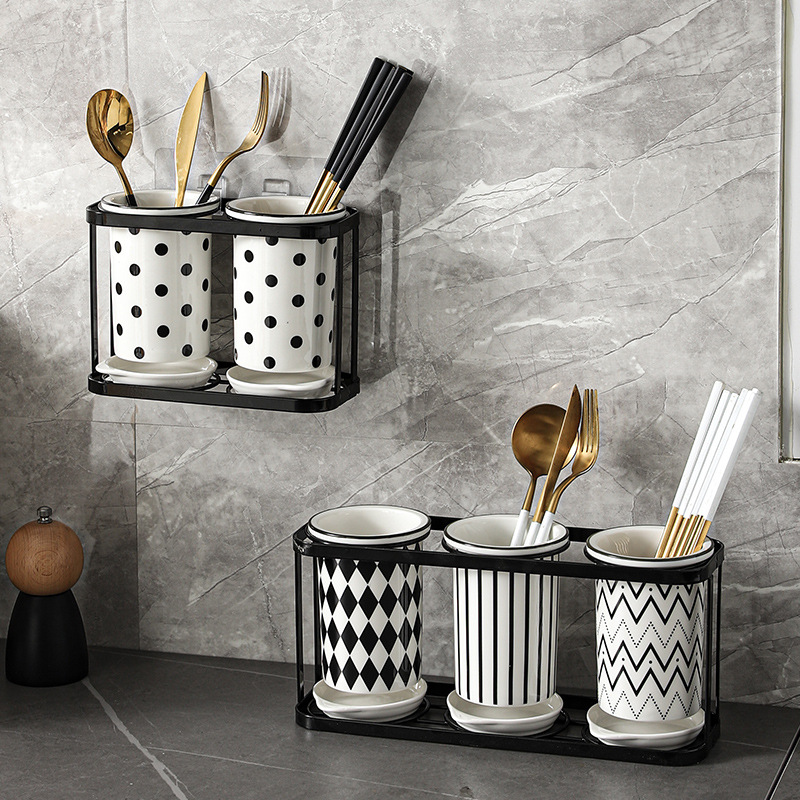 赫本風箸籠箸筒陶磁器家庭用キッチン壁掛け箸かご水切り防かびスプーン箸収納桶