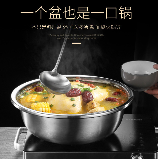 特厚家庭用キッチンステンレス大盆と麺洗面器洗面器水煮魚多用盆調味料盆