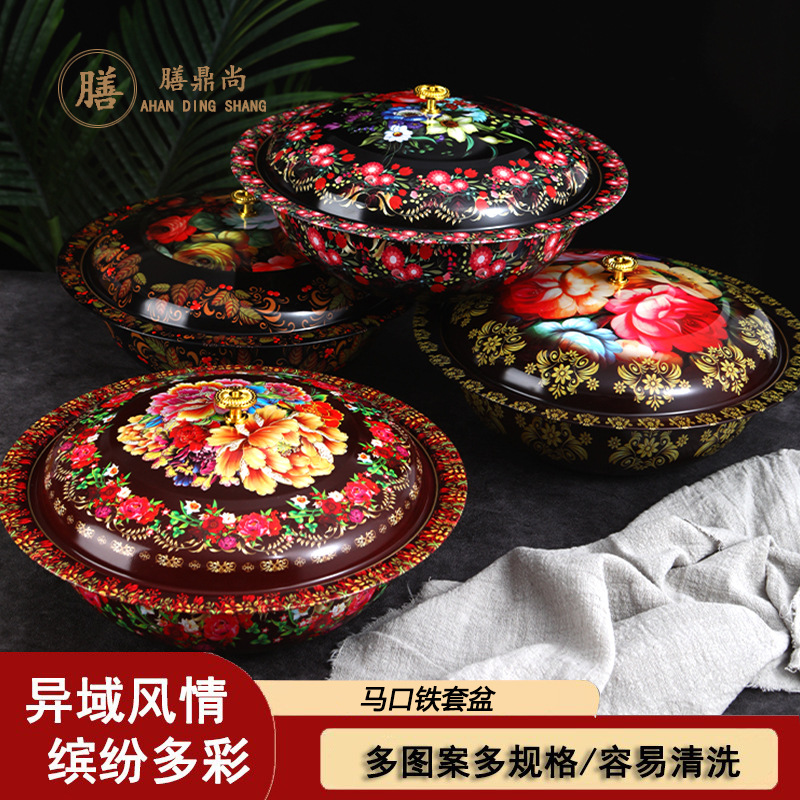 東南アジアプリントブリキフルーツボウル家庭用蓋付き食事ボウルアフリカアラビアセットボウル卸売