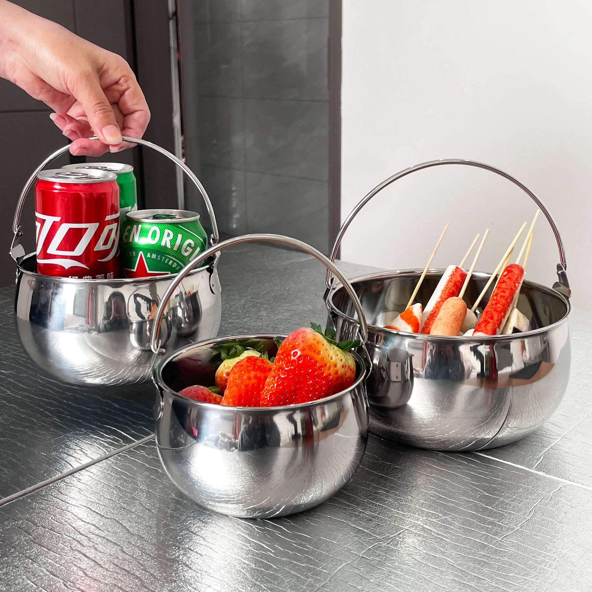手提げ式のステンレスの豚油のたらいは卵の碗の料理の鍋を蒸して鍋の火鍋の皿のスープの鍋の氷の塊の桶の果物の皿をかけることができます。