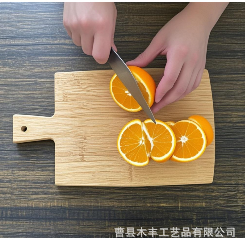木製トレイ食器 木製丸型無垢材フルーツパン皿 洋食店寿司皿 ハンドル付き木製トレイ
