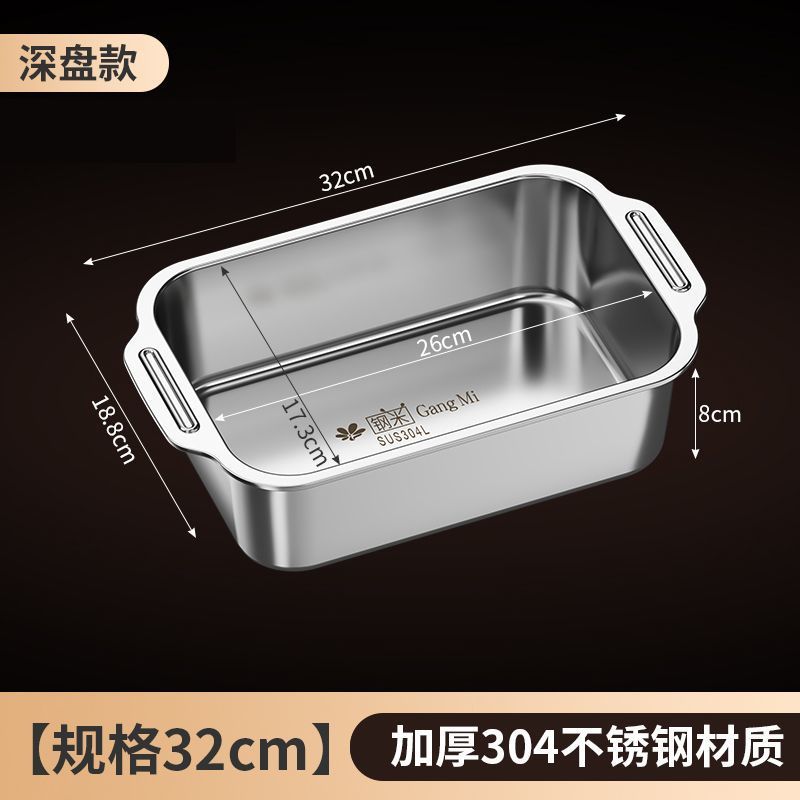 Gangmi ステンレス鋼焼き魚プレート両耳家庭用バーベキュースクエアプレート一体型深平底トレイサプライチェーン工場供給