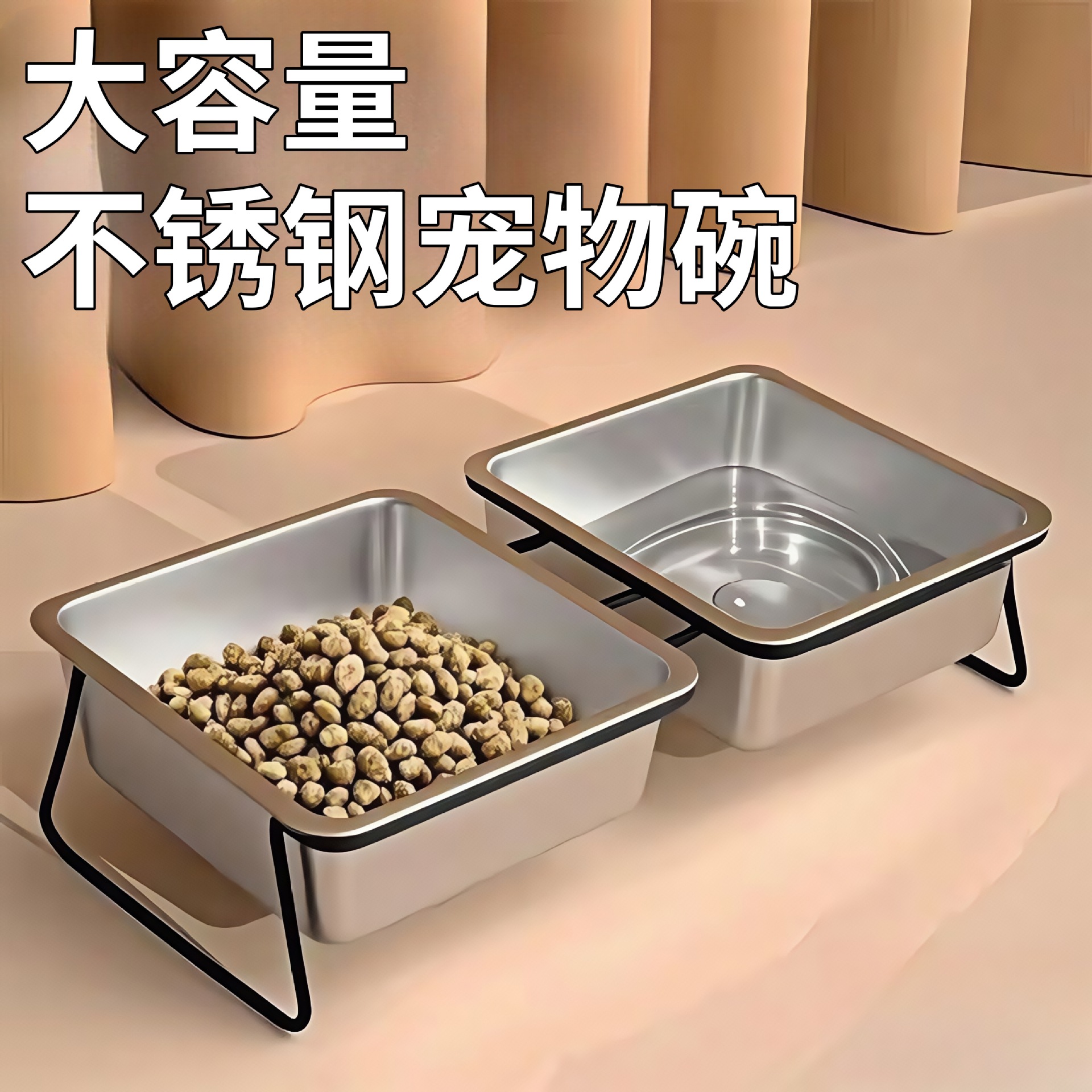 極厚のステンレス製ペットフードボウル、滑り止め、噛みつき防止、猫ボウル、犬ボウル、分離されたフードとウォーターボウル、ネックプロテクター、高架スタンド