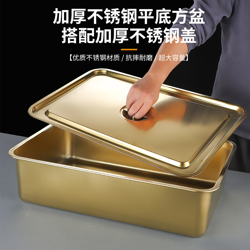 ステンレス角皿蒸し器バイキングの食事鉢は金色の長方形のフラット皿を厚くして蓋付きステンレス