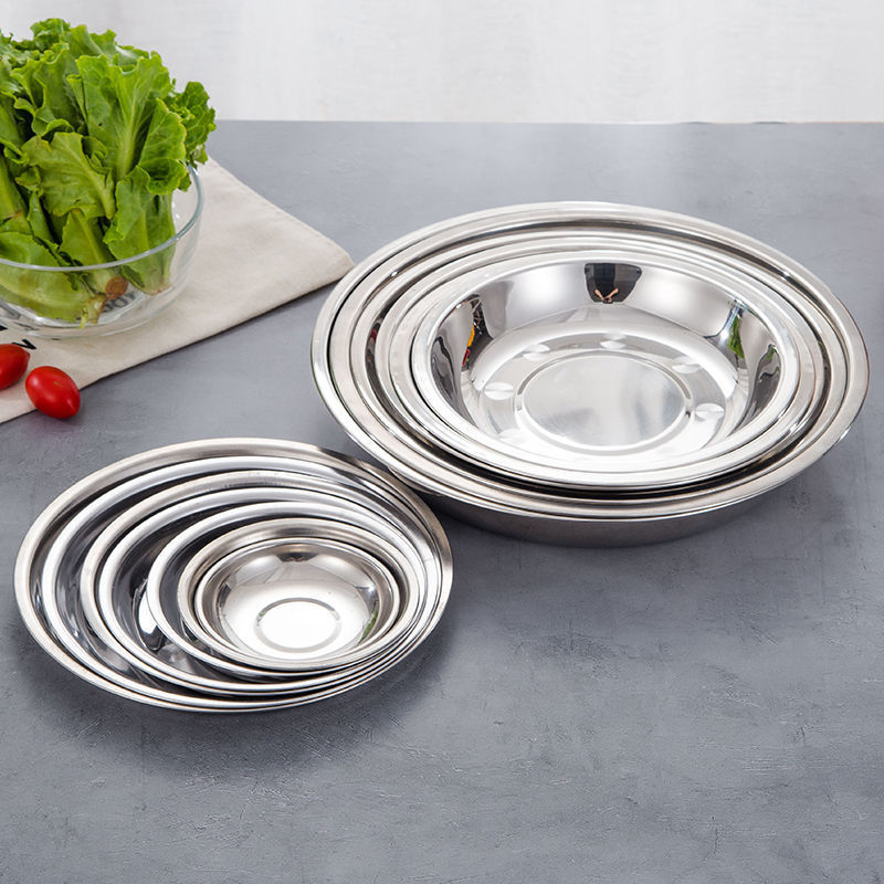 304 ステンレス鋼のラウンドディスクディスプレイプレート家庭用ラウンド厚い深いディッシュプレート食品グレードのキッチン