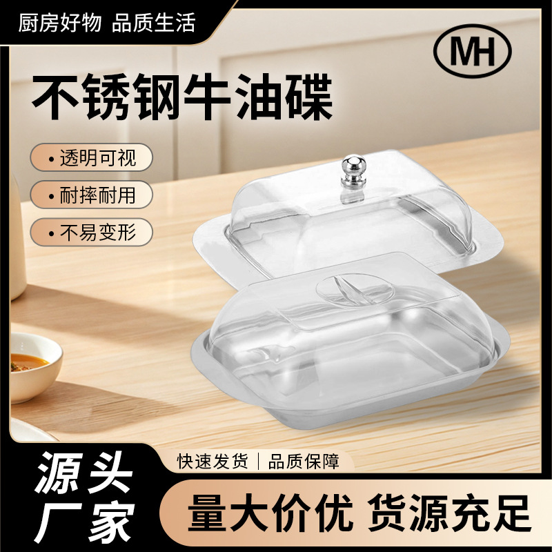 ステンレス製バター皿 食用グレードのステンレス素材 透明な蓋付き