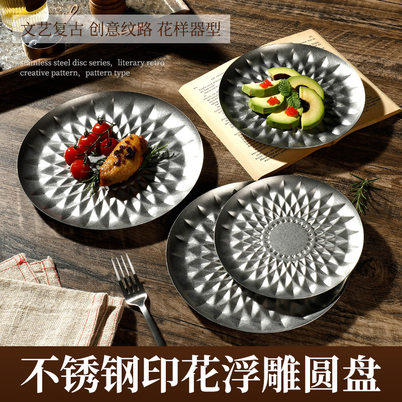 レトロな雪の銀の四角形の皿304ステンレスのトレーのステーキの皿の喫茶店のお菓子のケーキの皿はバーベキューをして皿を並べます。