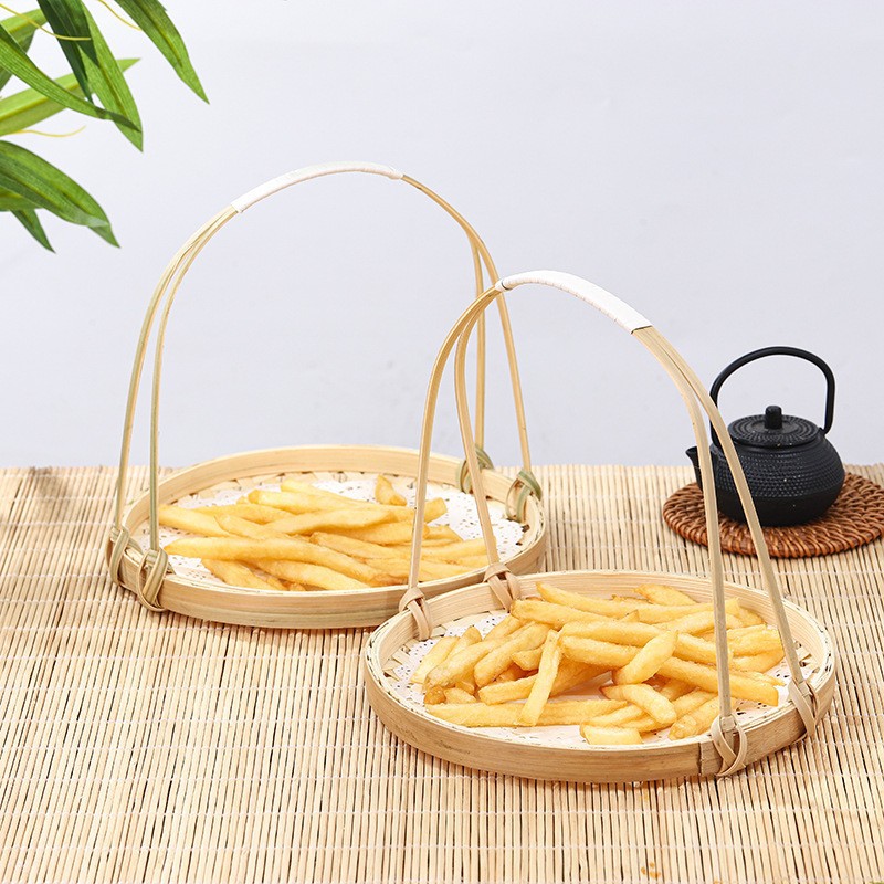 手作り竹編みバスケット家庭用ティープレート果物バスケット菓子トレイ創意竹バスケット結婚竹編みバスケット