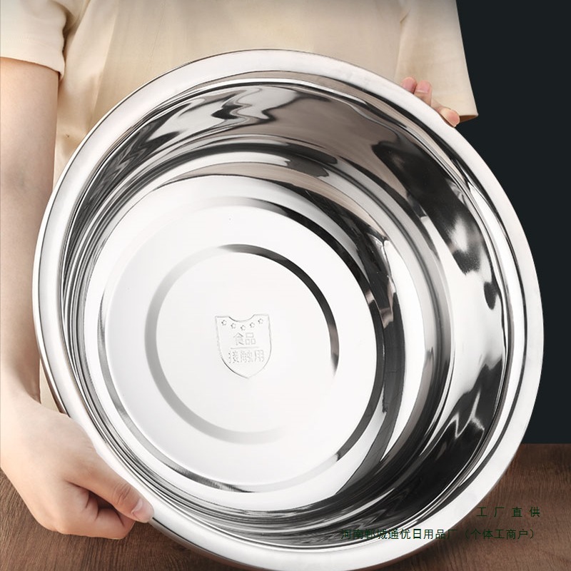 極厚304ステンレス製洗面器、食品グレードの家庭用卵と洗面器、キッチンベーキング洗面器、スープ洗面器、鉄洗面器
