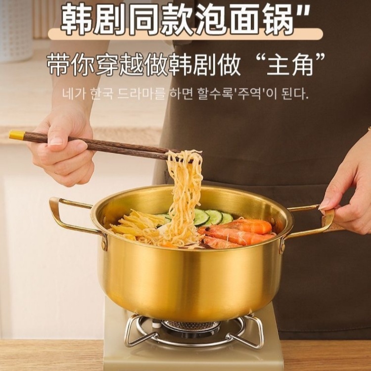 韓国インスタントラーメンポット小型調理鍋家庭用ステンレス鋼双耳カタツムリヌードルスープポットインスタントラーメンラーメンポットラウンド
