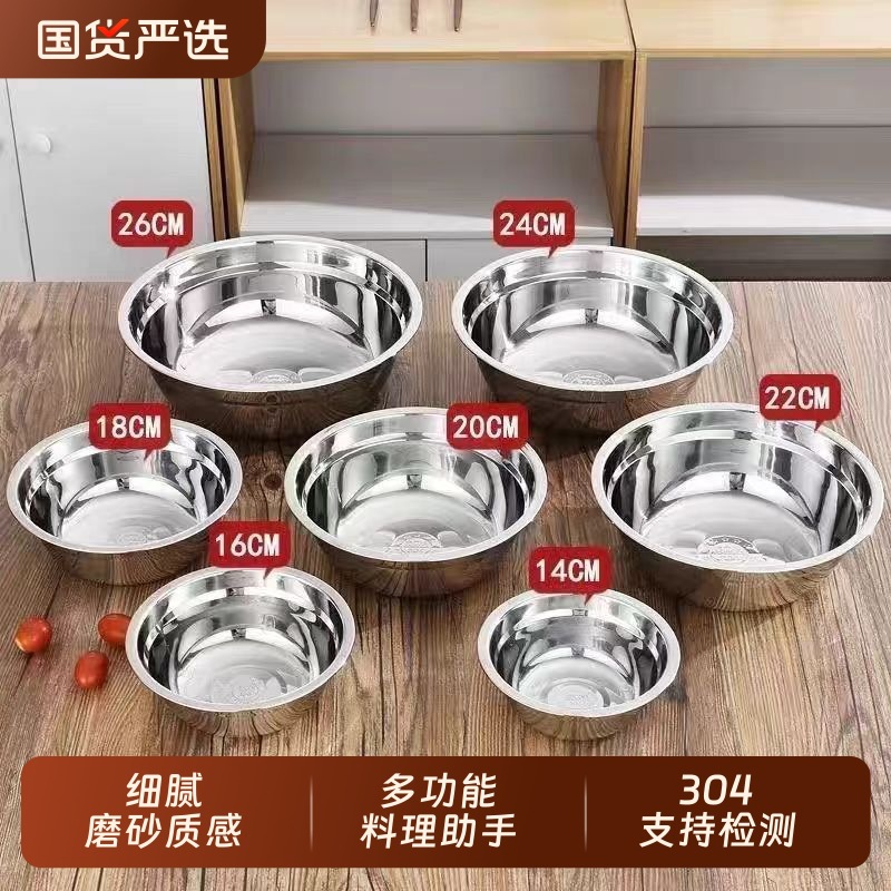304 ステンレス鋼の洗面器セット、丸い味のボウル、家庭用調理洗面器、スープ、フルーツ、米の洗浄洗面器、麺類、野菜の洗浄洗面器