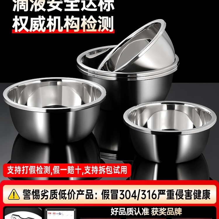 極厚304ステンレスボウル、家庭用スープボウル、キッチン卵泡立てボウル、食品および食器洗いボウル、ベーキンググレードの特大ボウル