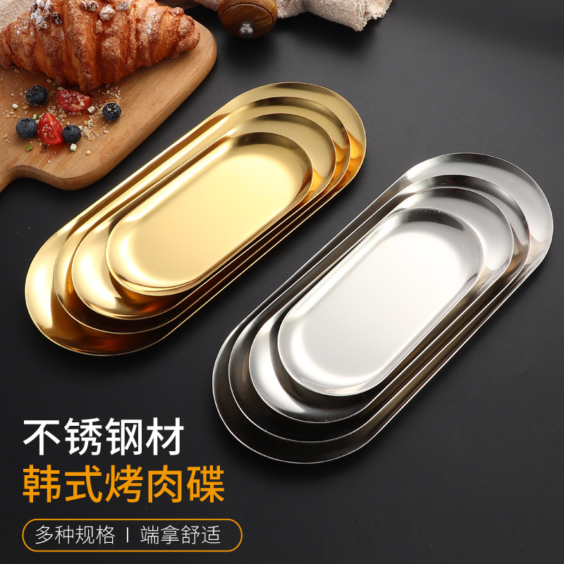 国境を越えたメーカー卸売ステンレス鋼楕円形プレートレストランデザートプレートトレイ韓国料理バーベキューゴールデンプレート