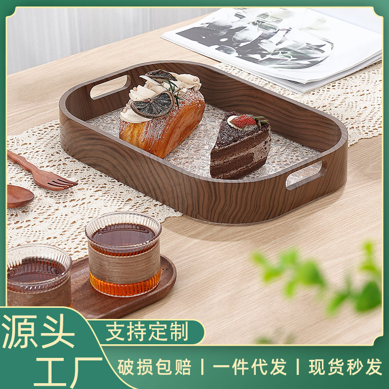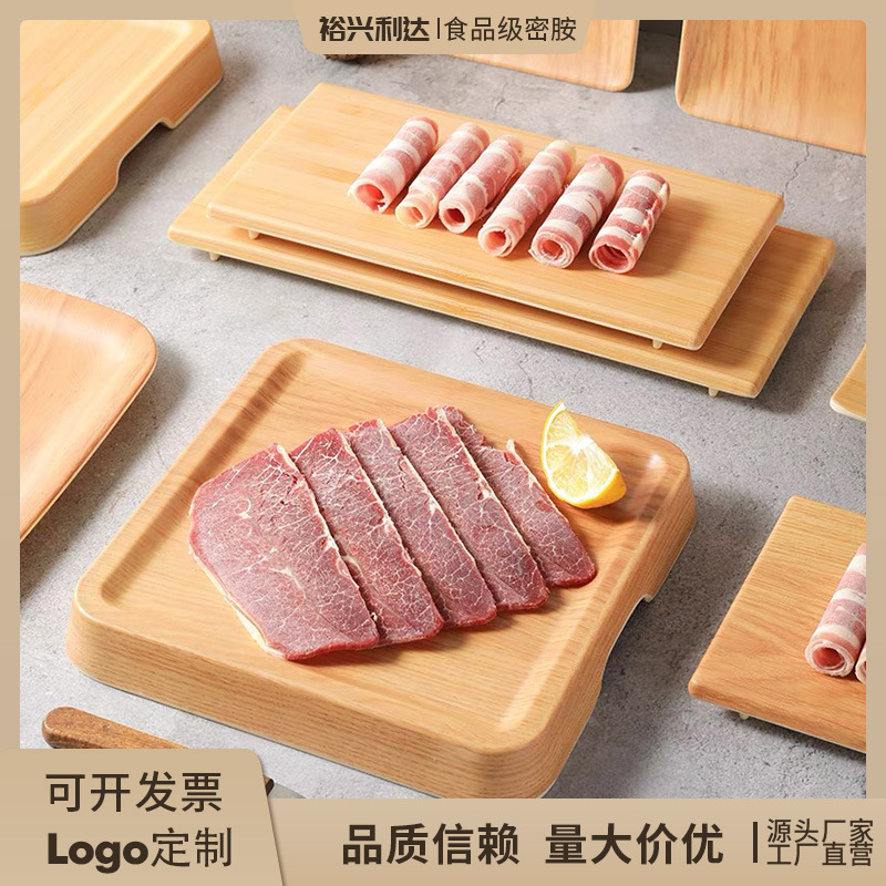 メラミン木目竹紋皿模造磁器長角皿鍋店おかず皿焼肉皿ピザ平皿商用