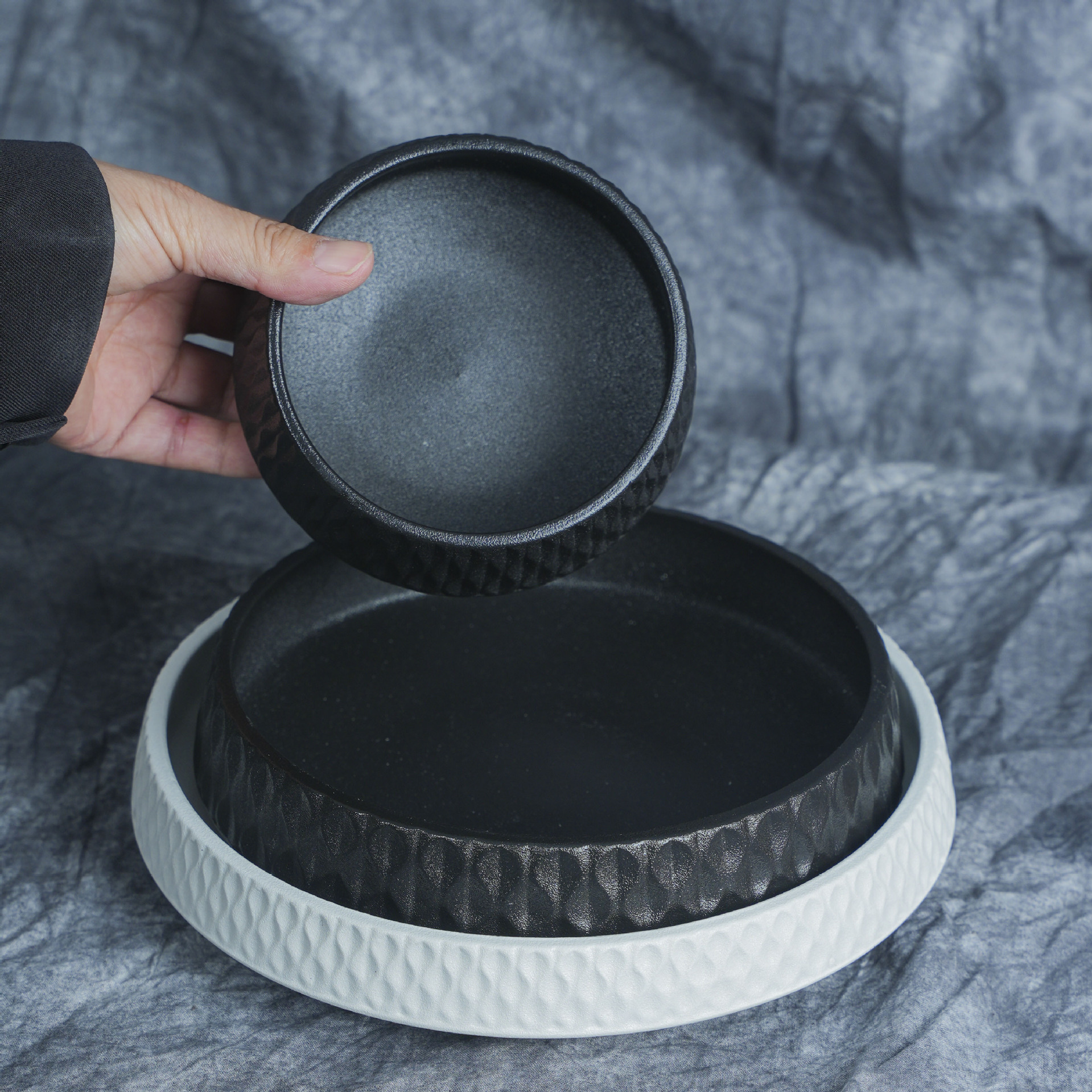 メーカーつや消しセラミック洋食ディナープレートクリエイティブフラットプレート芸術的意図皿ディッシュウェア二層断熱ラウンドプレートデザートプレート