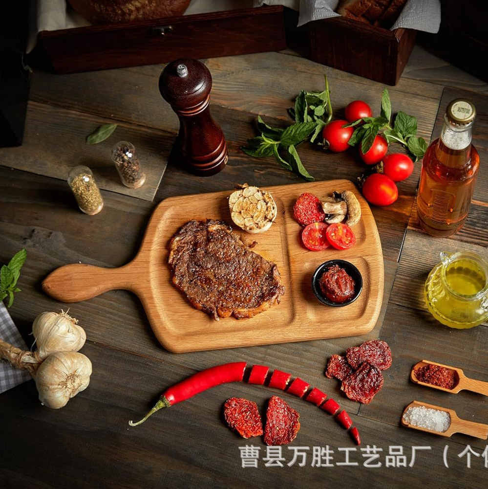 竹製トレーレストランハンドル付き両面シンプル実木まな板分格皿ピザステーキパン板