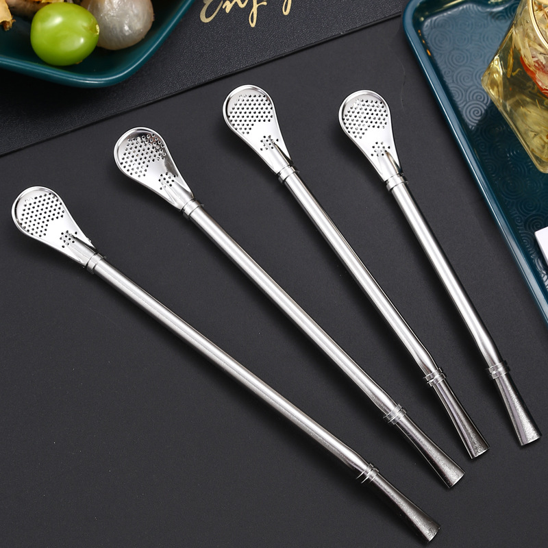 ストロースプーン304ステンレス濾過スプーン創意携帯コーヒー飲料撹拌スプーン花茶両用ストロースプーン