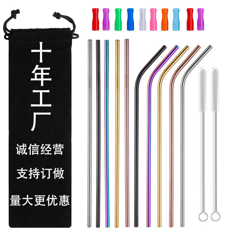 工場304ステンレスストローカラー飲料パールミルクティーボス金属ストロー麻袋セットクロスボーダー