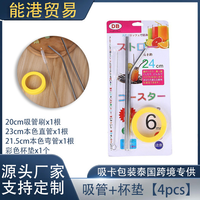 鉄ストローチューブブラシシリカゲルカップパッドセットステンレスストレートストロー曲げストロー【タイ20タイ】