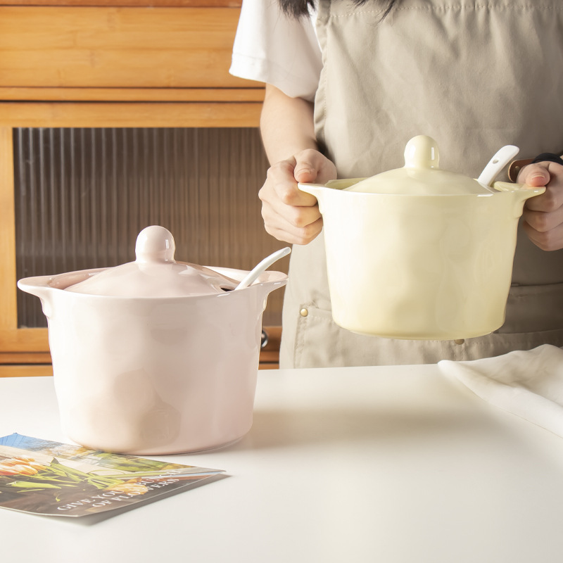 陶磁器の手はブタの油の缶をつまんで調味します。家庭用の台所の貯蔵タンクは高温に耐えます。