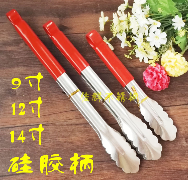 ステンレスのシリカゲルの赤いゴムの食品は食べ物を挟みます。