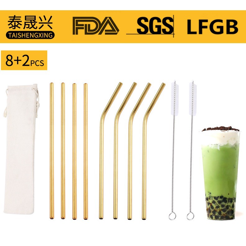 メーカー直販304ステンレスストローセットクロスボーダーカラー金属ストロー飲料ミルクティーコーヒーストロー