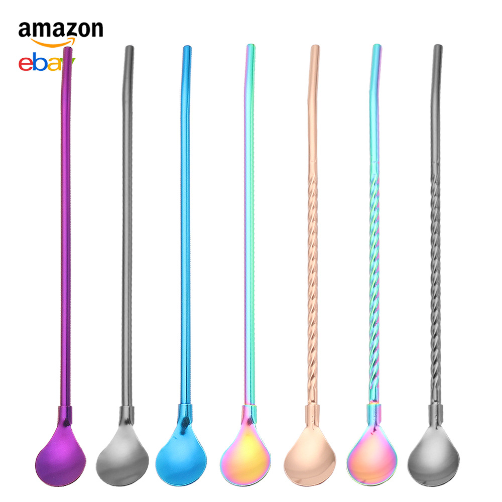 304ステンレスストロー創意ミルクティー冷飲コーヒー撹拌砂氷ストローめっき色両用ストロースプーン