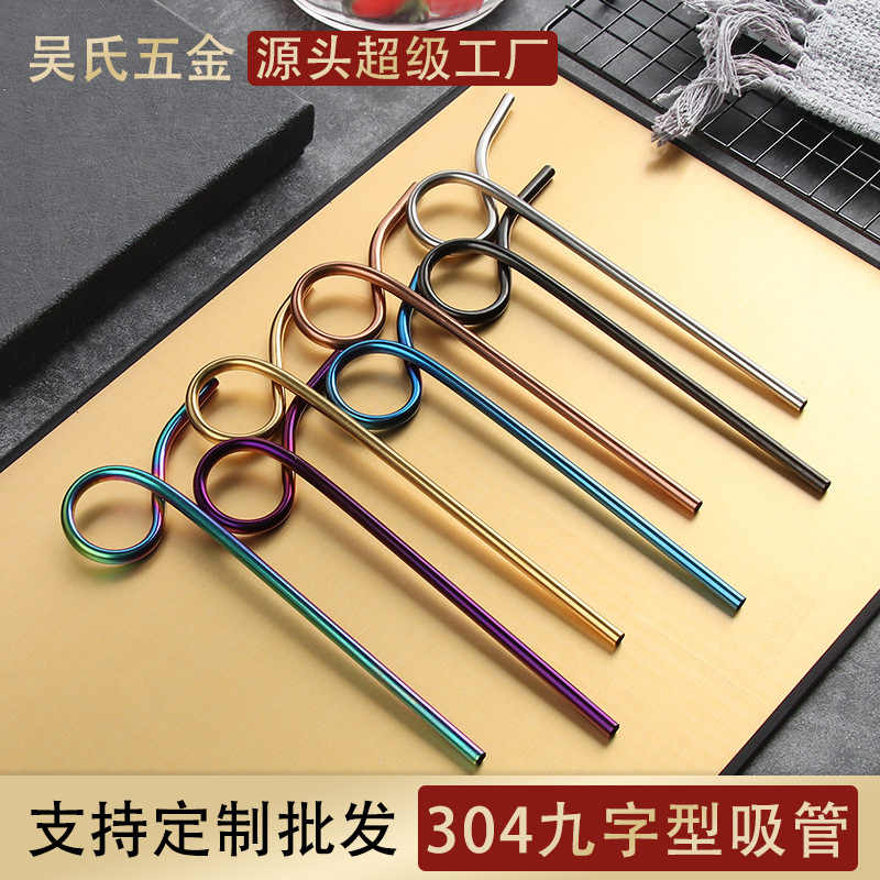 9字創造芸術ストロー304ステンレス鋼曲げストロー新型造形バーカクテルストロー卸売り