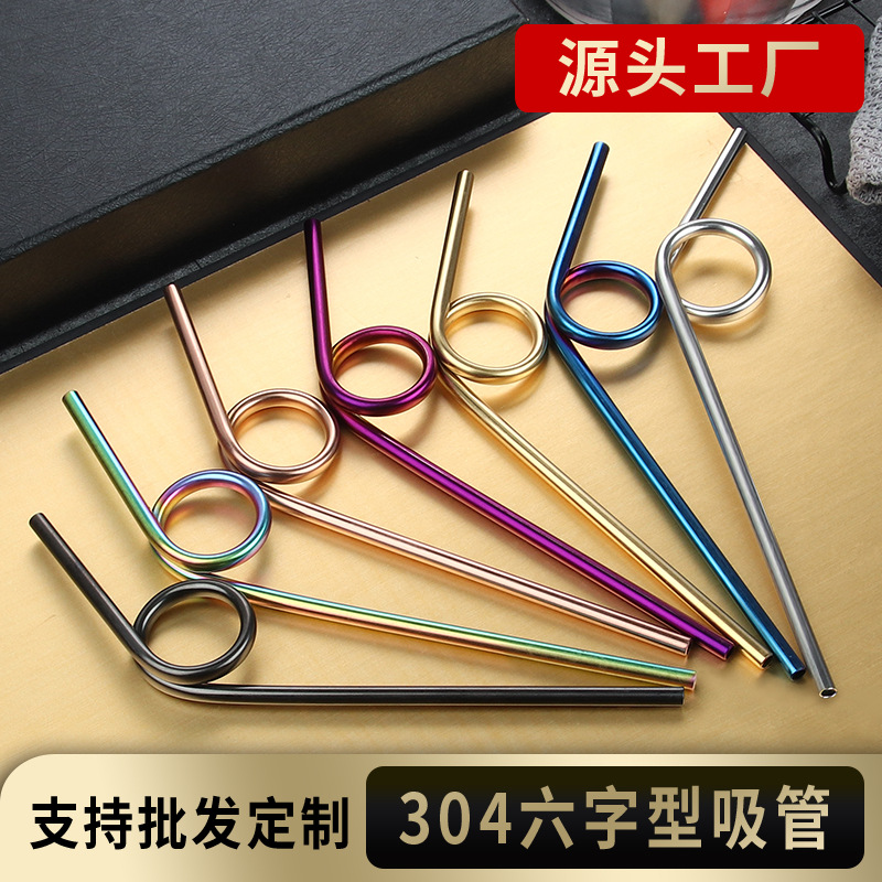 6字型カクテルストロー 304ステンレス鋼 カラフルメタル飲料ミルクティー 曲線形状 クリエイティブバーストロー