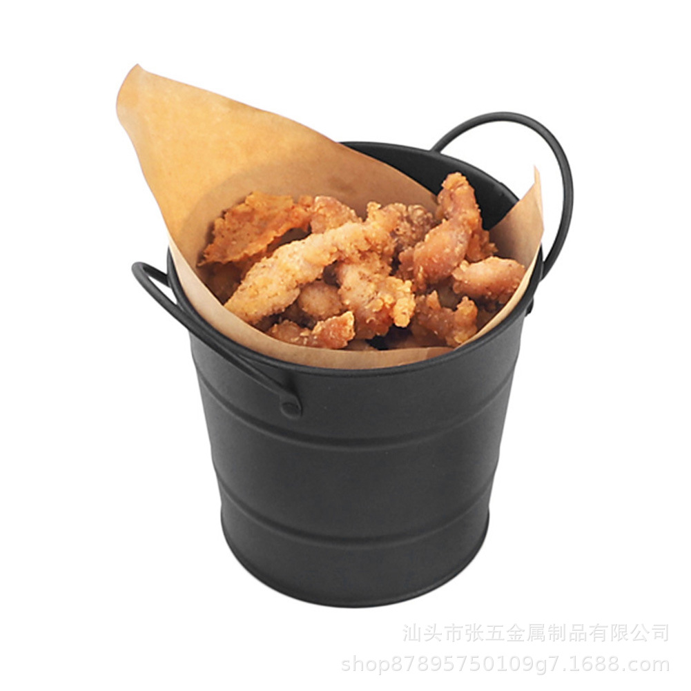 源工場の黒い鉄の桶のフライドチキンのかごの両耳のミニの小さい氷の桶の軽食のフライドチキンの桶は味噌のフライドポテトの桶につけて詰めます。