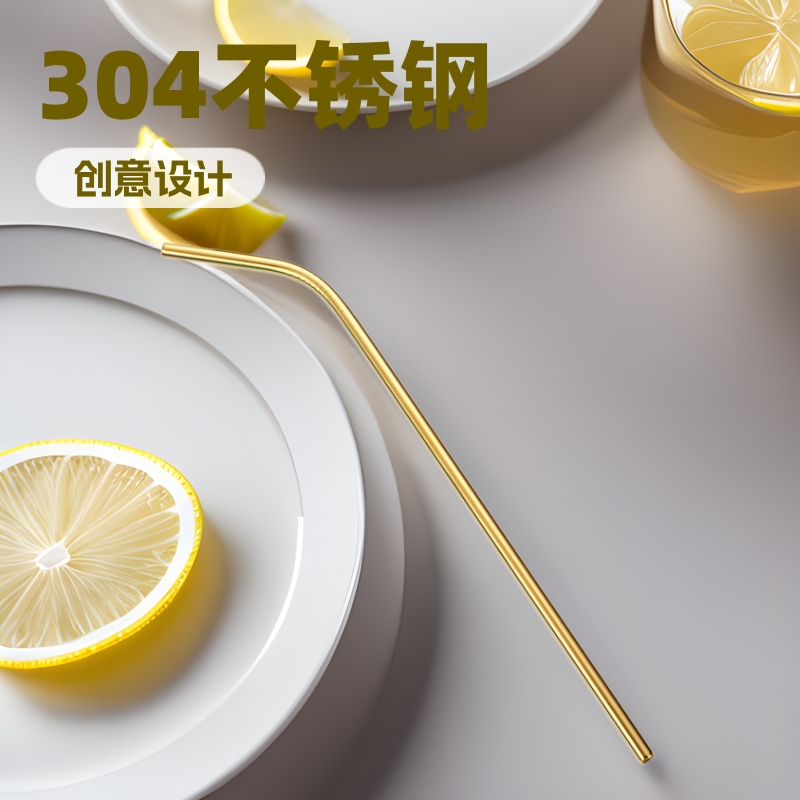 304ステンレスストローセットクリエイティブコーヒーミルク茶ドリンクストローチタンメッキ金属ストレート曲げストロー卸売
