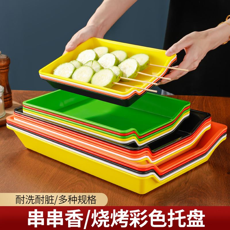 プラスチックファーストフードバーベキュープレート長方形中国と西洋スタイルの多機能分類串プレートバーガートレイ落下防止洋食レストラン