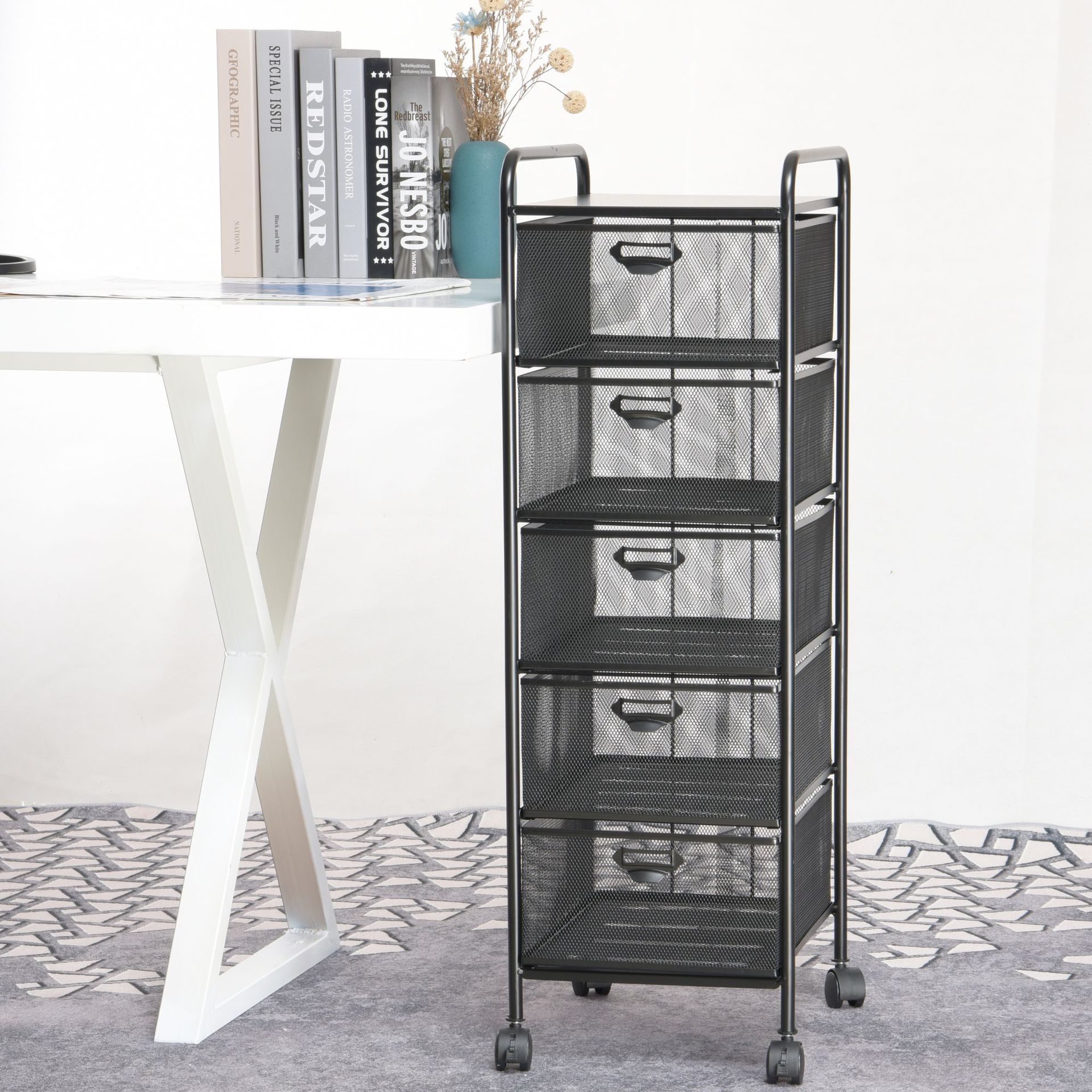 収納ラック床置き多層トロリー学生ランドセル用車輪付き床下可動本棚