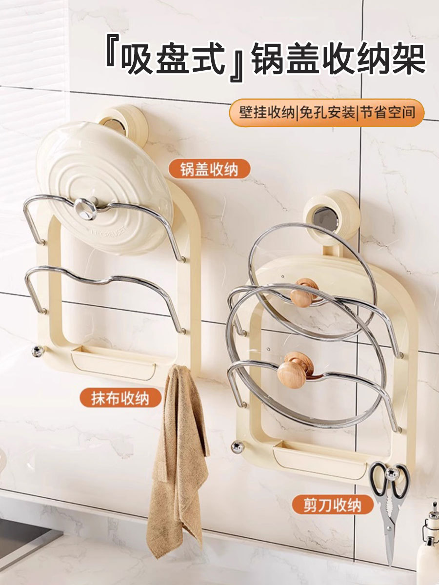 吸盤多層鍋蓋ラックキッチン壁掛けまな板ラックフック付き多機能排水まな板収納ラック
