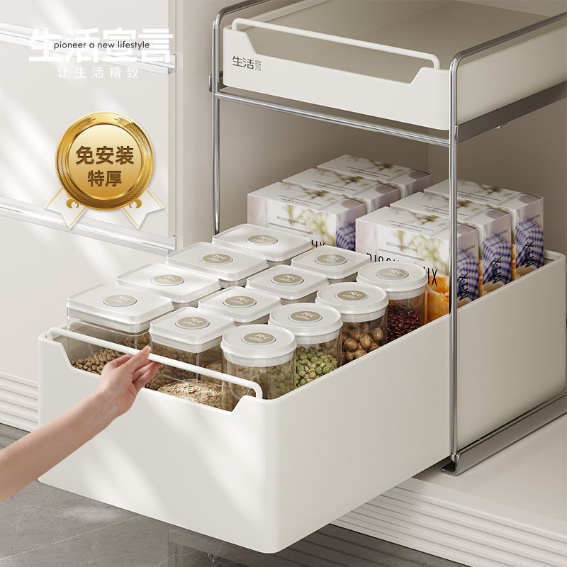 台所の戸棚引き出し式下水槽調味料棚テーブルの下のかばんの間食棚