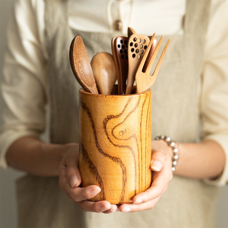 無垢材箸バレルレストランホテル多目的排水木製箸ケージ木製ペンホルダーメーカー卸売彫刻ロゴ